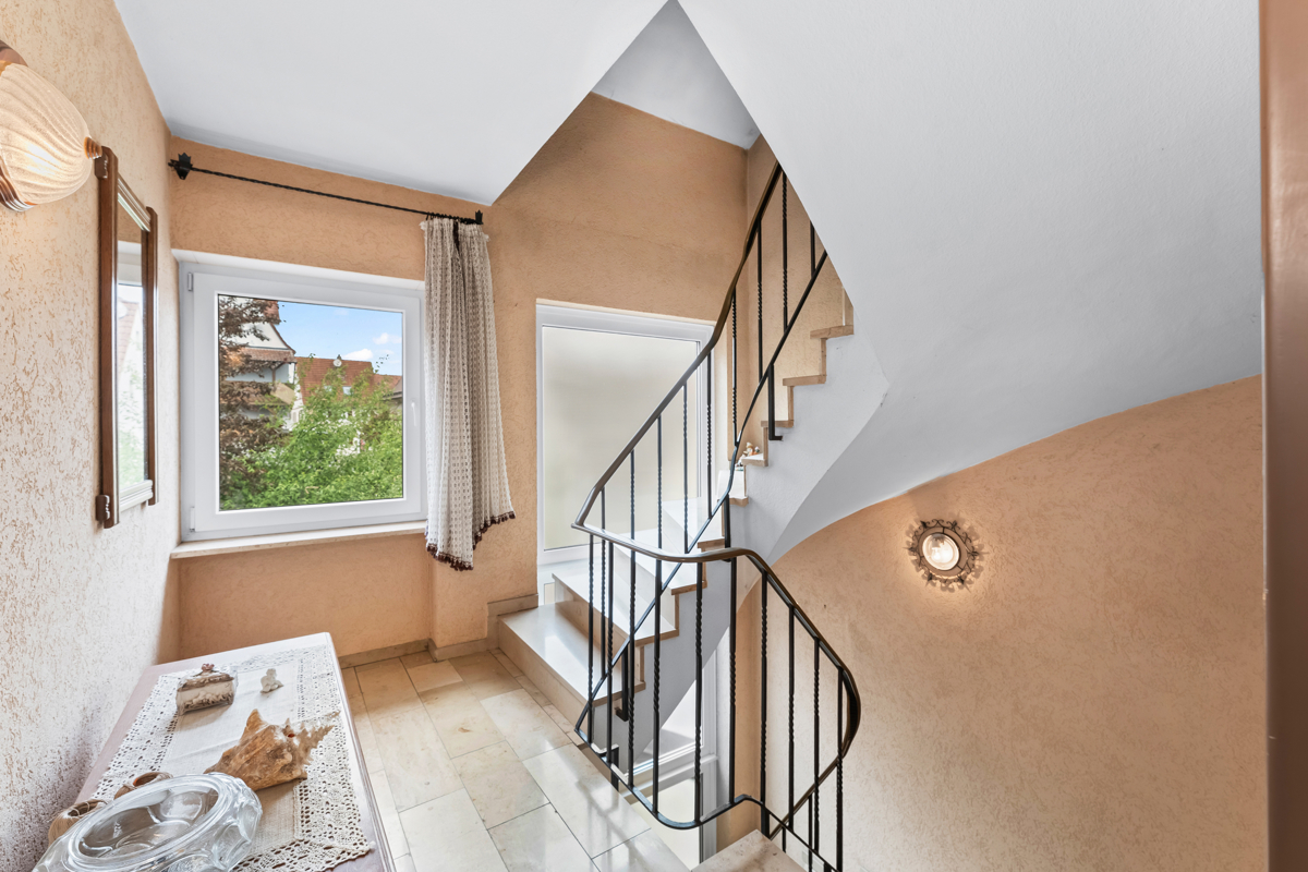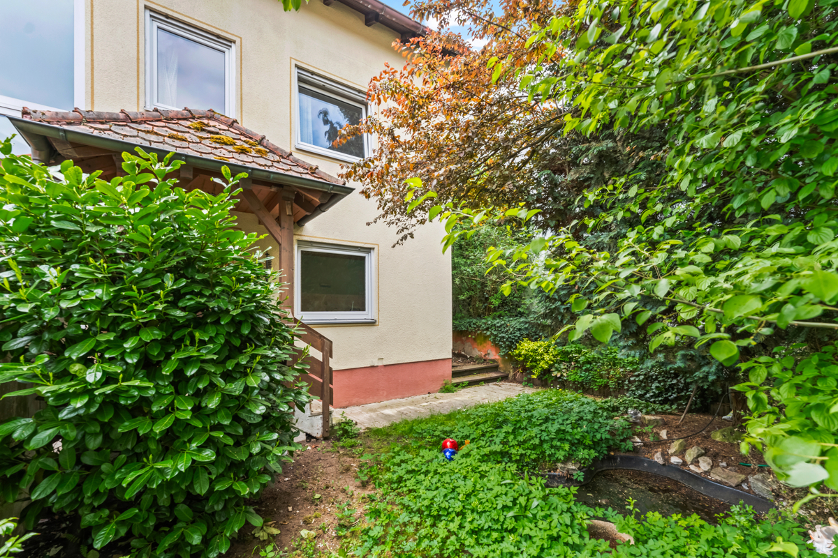 Dieses Zweifamilienhaus (Doppelhaushälfte) wurde ursprünglich 1957 erbaut und 1972 erweitert, wodurch sich eine großzügige und flexible Wohnmöglichkeit ergibt. Es besteht ein gewisser Renovierungsrückstau, im Altbauteil beider Wohnungen sowie vorwiegend in der unteren Wohnung.Das Grundstück umfasst ca. 465 m² und bietet einen idyllischen Garten, der zum Entspannen und Verweilen einlädt und genügend Raum bietet um eigenes Gemüse anzubauen.
