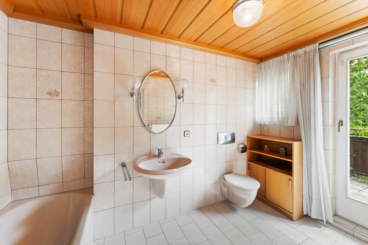 Die Ölheizung stammt aus dem Jahr 2000 und sorgt für eine zuverlässige Wärmeversorgung. Das Badezimmer im Erdgeschoss ist aus dem Baujahr, während das Bad im Obergeschoss in den 1980er Jahren erneuert wurde – beide Badezimmer bieten eine solide Basis für individuelle Gestaltung.