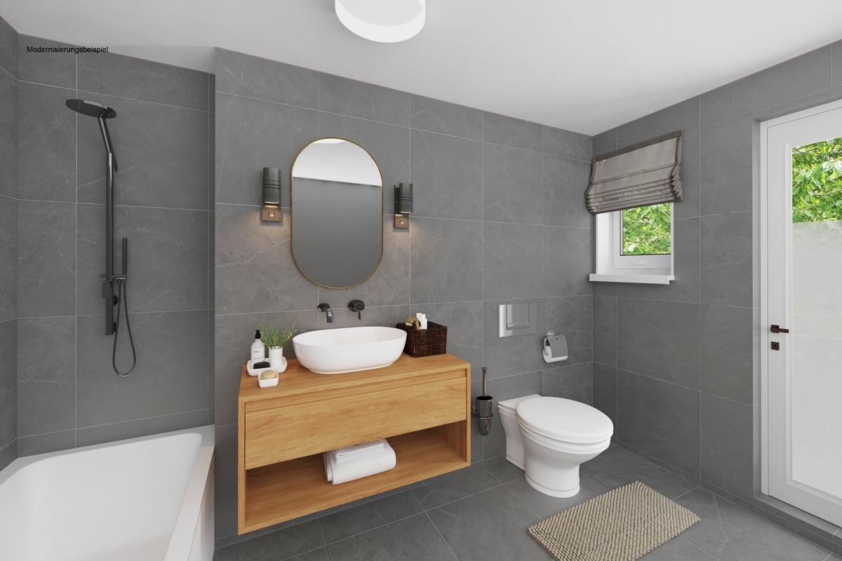 - Bad mit Wanne, WC und Waschtisch
