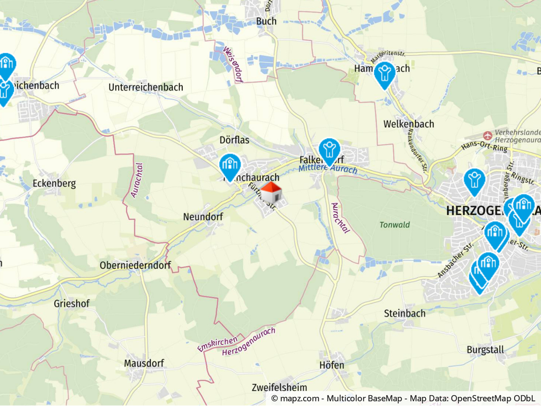 Die Gemeinde Aurachtal ist eine attraktive ländliche Gemeinde im Herzen Bayerns, die sich durch ihre gute Verkehrsanbindung auszeichnet. Sie befindet sich im Landkreis Erlangen-Höchstadt und erstreckt sich über eine Fläche von rund 45 Quadratkilometern. Aurachtal besteht aus mehreren Ortsteilen, darunter Aurachtal selbst, Falkendorf, Igelsdorf, Neudorf und Wellerstadt.Nahversorgung: