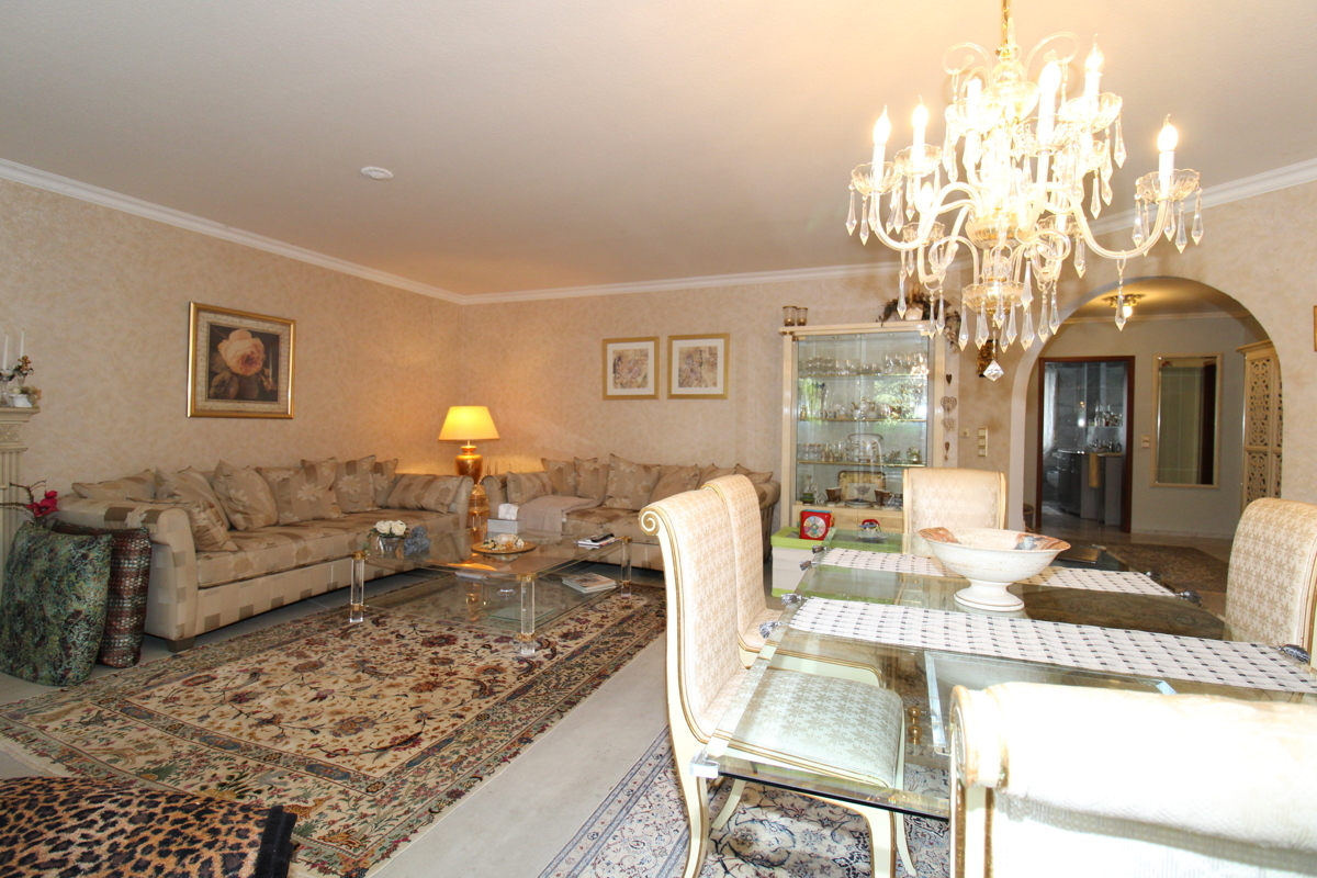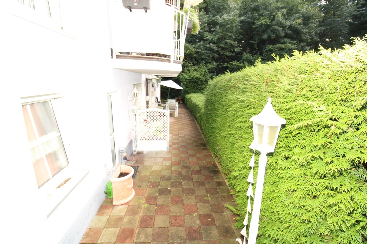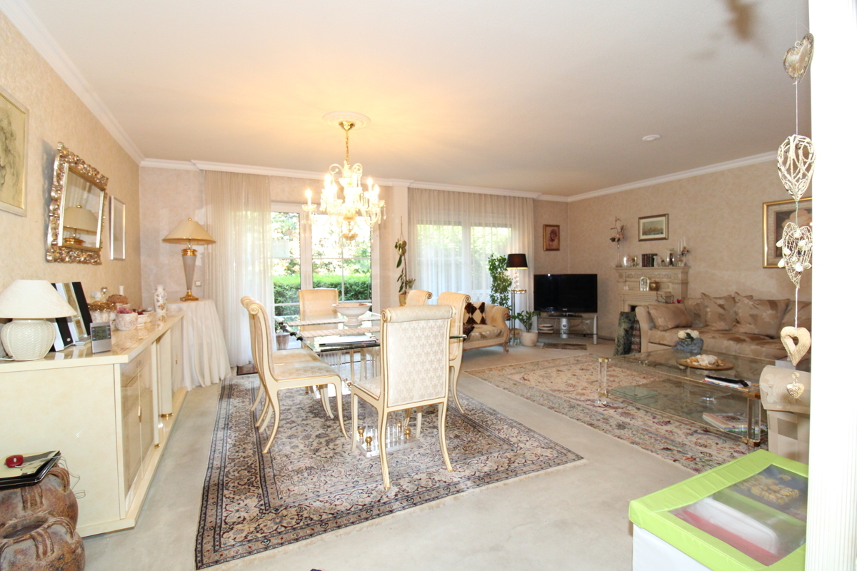 Diese großzügige Erdgeschosswohnung beeindruckt durch ihre helle und freundliche Gestaltung sowie eine attraktive Südausrichtung mit freiem Blick ins Grüne. Der kleine Weiher direkt vor dem Haus sorgt für eine idyllische Atmosphäre und macht diese Immobilie zu etwas Besonderem.Die umlaufende Terrasse mit ausfahrbarer Markise bietet zu jeder Tageszeit den idealen Platz im Freien – vom Frühstück in der Morgensonne bis zum entspannten Abend mit Blick ins Grüne.