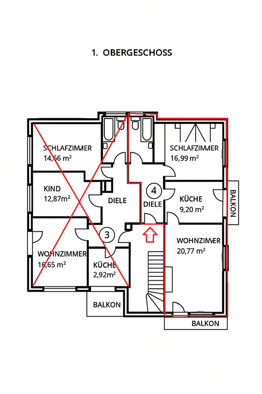 Der erste Balkon ist direkt vom großzügigen Wohnzimmer aus zugänglich – perfekt, um sonnige Stunden zu genießen oder den Tag entspannt ausklingen zu lassen.