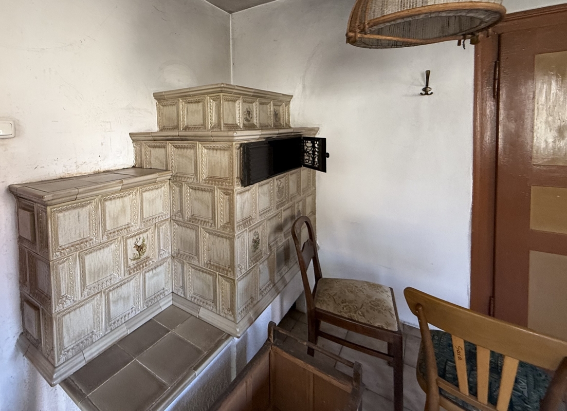 Das Wohnhaus ist mit einem traditionellen Holzkachelofen beheizt worden, der derzeit stillgelegt ist – hier besteht die Möglichkeit, das Haus nach eigenen Vorstellungen zu modernisieren und zu beheizen.