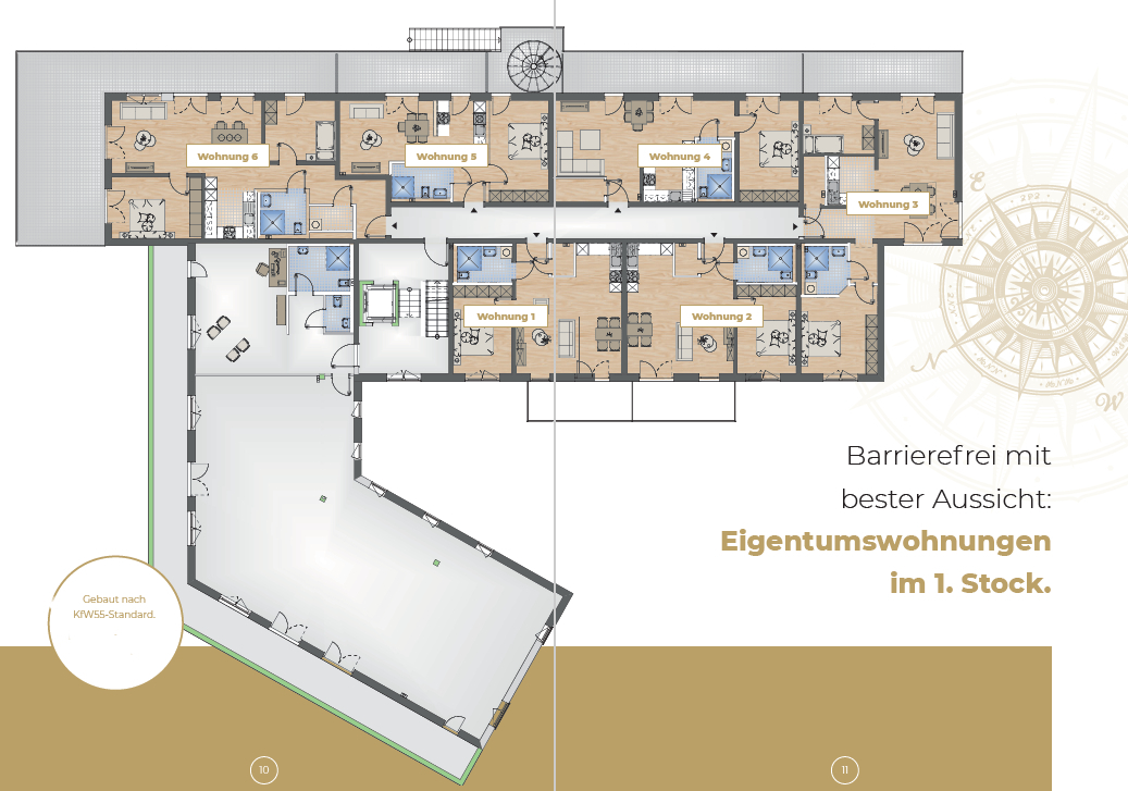 Die Wohnung befindet sich in einer modernen Wohnanlage mit nur 16 Einheiten, die durch ein innovatives Wohnkonzept besticht: Neben klassischen Wohnungen umfasst sie eine Tagespflege, eine ambulant betreute Wohngemeinschaft, sowie ein Gesundheitszentrum mit einer neurogeriatrischen Therapiepraxis. Dadurch entsteht ein besonders sicheres und komfortables Wohnumfeld, das Wohnen im Alter und betreutes Wohnen ideal kombiniert.