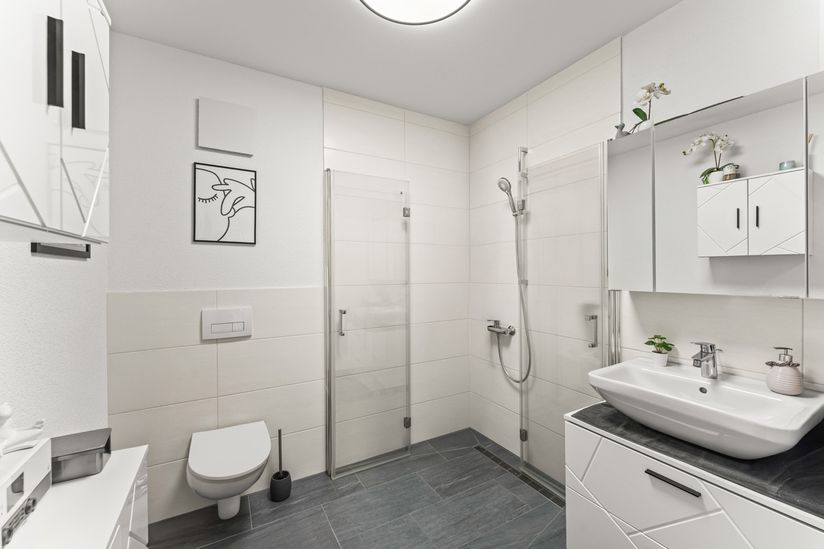 Diese lichtdurchflutete, barrierefreie 3-Zimmer-Wohnung überzeugt mit hochwertiger Ausstattung und durchdachtem Grundriss. Ein besonderes Highlight ist die großzügige Dachterrasse mit unverbaubarem Blick ins Grüne – ideal zum Entspannen und den Sonnenuntergang zu genießen.